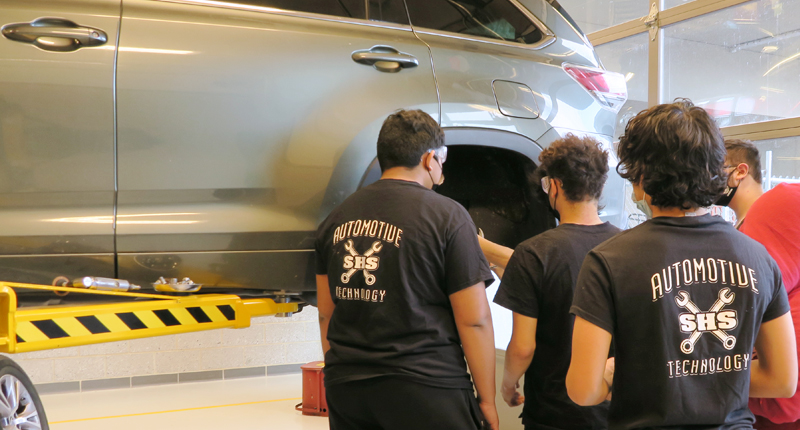 The Automotive Technology program at Somerville High School is a NATEF (National Automotive Technical Education Foundation) certified program in the Commonwealth of Massachusetts. This means students are on track for ASE certification in this field. This nationally recognized credential is an open door for worldwide employment in the automotive industry. Experienced graduates are sought-after technicians who are encouraged to continue both certification and training in a post-secondary institution with a major manufacturer such as: BMW, Ford, Chrysler, or GM. The training on the secondary level is intensive. Strong mathematical and computer skills are a necessity.